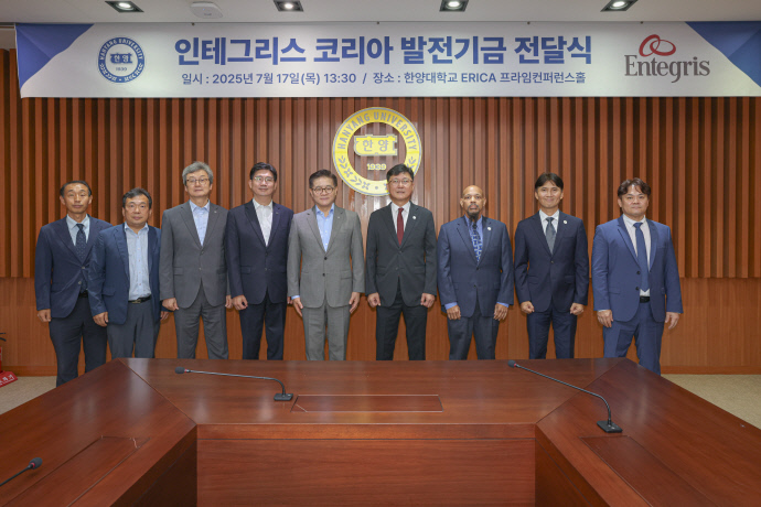 한양대학교 ERICA는 최근 교내 PRIME 컨퍼런스홀에서 글로벌 반도체 기업 인테그리스 코리아와 발전기금 전달식을 개최했다고 18일 밝혔다.